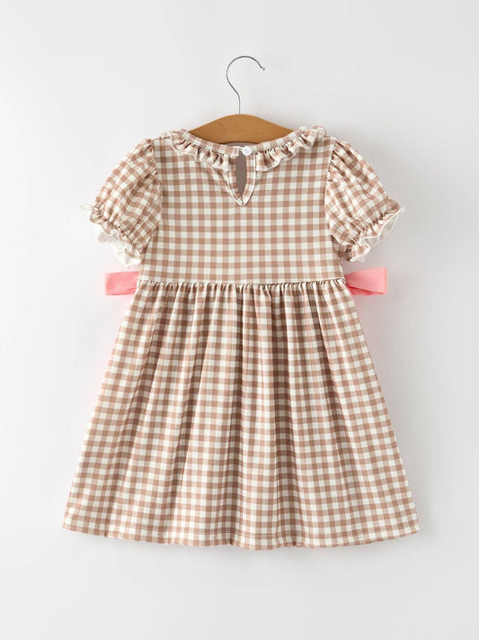 Christmas Vintage-Style Plaid Dress with Embroidered Gingerbread and Bows