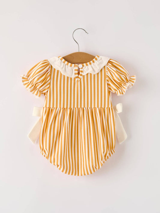Fall Thanksgiving Chicken Smock Embroidered Orange Stripes Baby Girl Romper