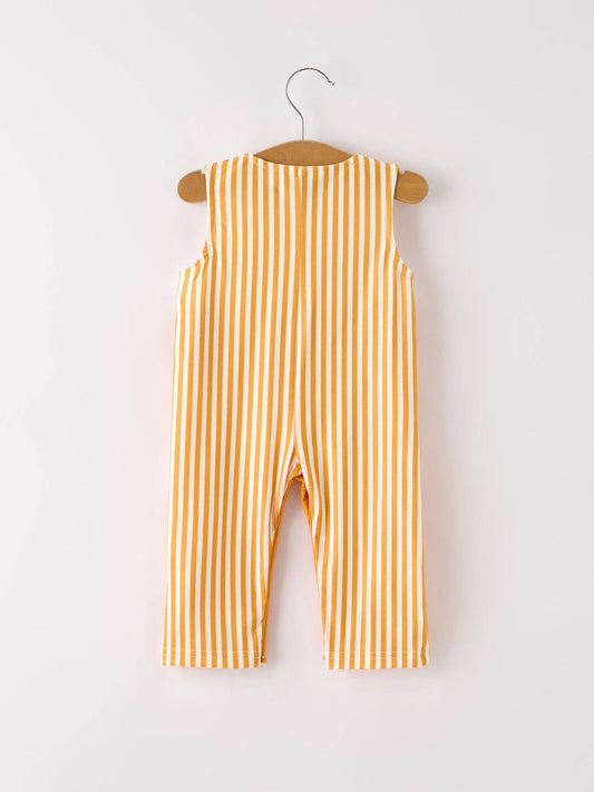 Fall Thanksgiving Chicken Smock Embroidered Orange Stripes Boys Romper