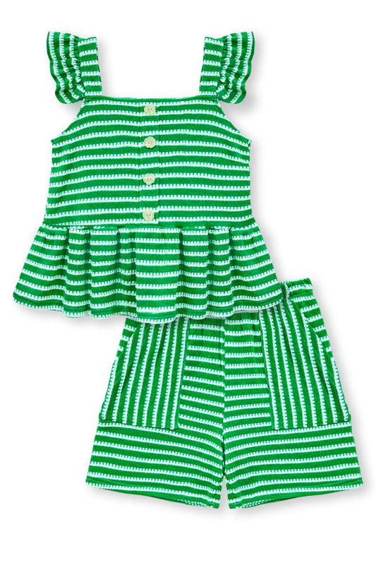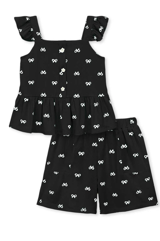 Girl's 2 pc Short Set w/ Ruffle & Bow Print