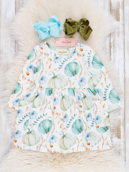 Green & Blue Pumpkin Pocket Dress