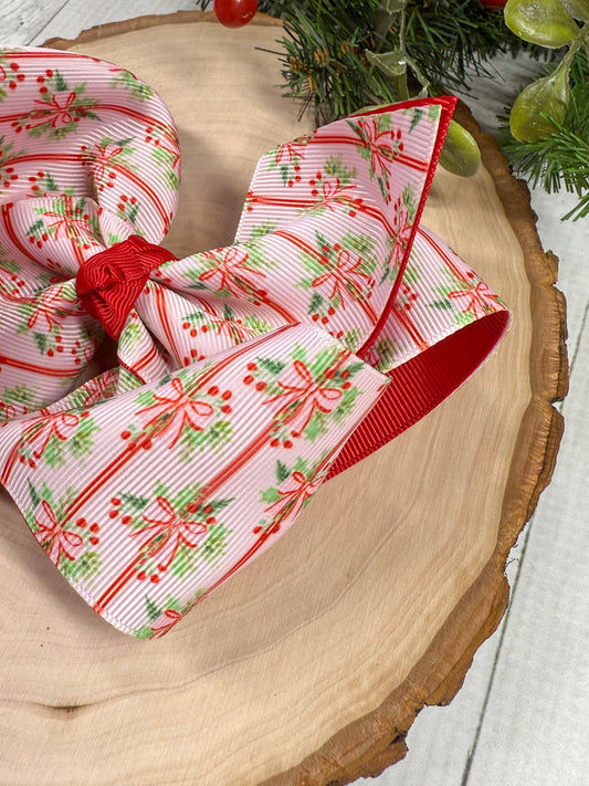 Holly Bows & Stripes Hair Bow