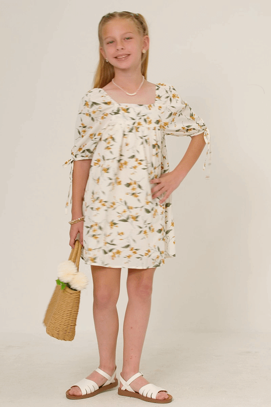 Hayden LA - Girls Floral Square Neck Tie Sleeve Dress