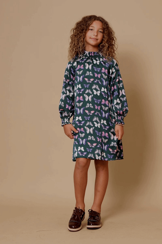 Hayden LA - Girls Vibrant Butterfly Print Smocked Cuff Dress