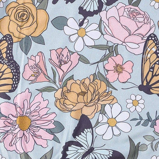 Adorable Sweetness - Infant Girls Gray Blue Floral Baby Gown and Bow Headband