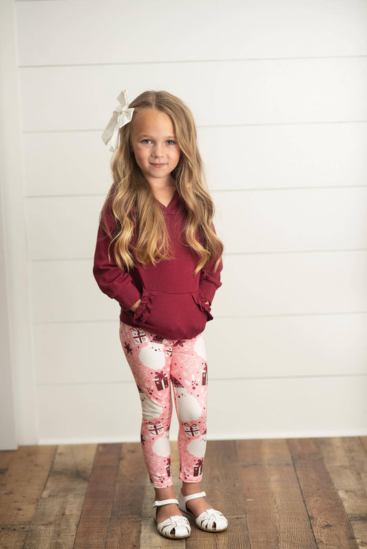 Kids Pink Santa Pocket Ruffle Hoodie Shirt and Leggings Set