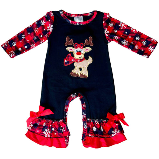 Baby Girls Plaid Rudolf Reindeer Christmas Romper