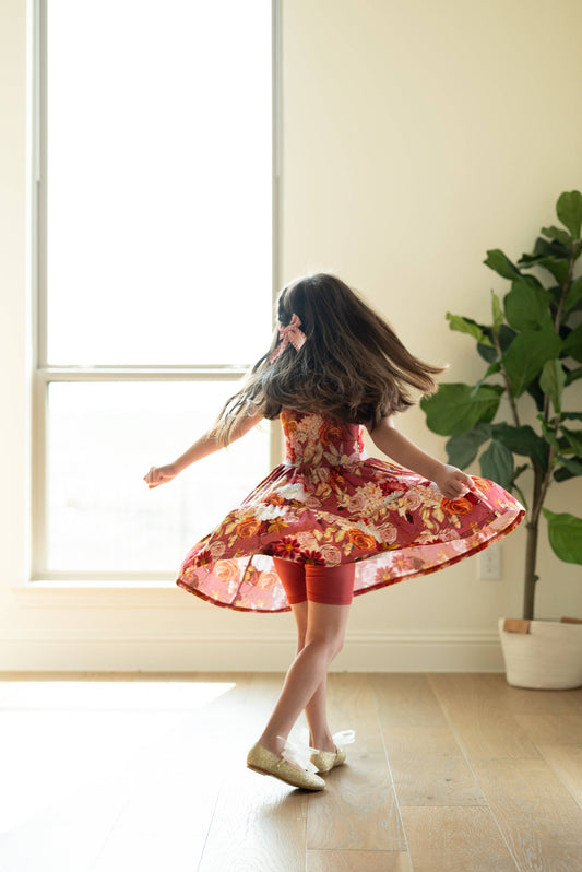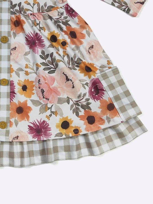 Autumn Fairy Blooms Puff Sleeve Twirl Dress