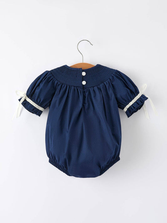 Rylee Faith Designs - Navy Blue Nativity Smocking Embroidered Baby Girls Christmas Romper
