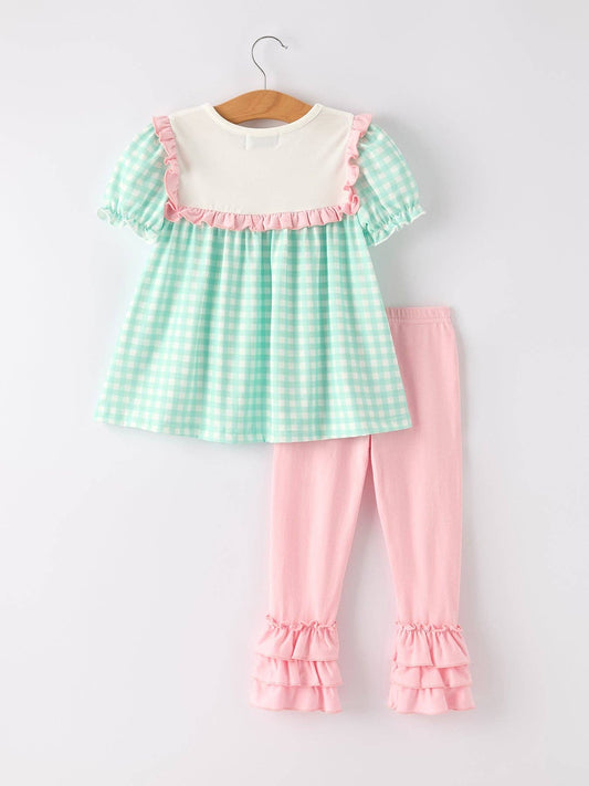 Thanksgiving Day Fall Pumpkin Flowers Embroidered Check Ruffles Girls Outfit