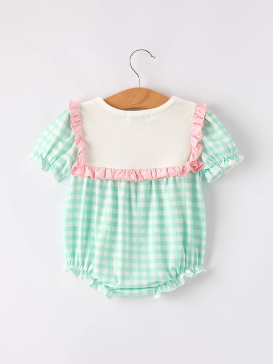 Thanksgiving Day Fall Pumpkin Flowers Embroidered Check Girls Romper