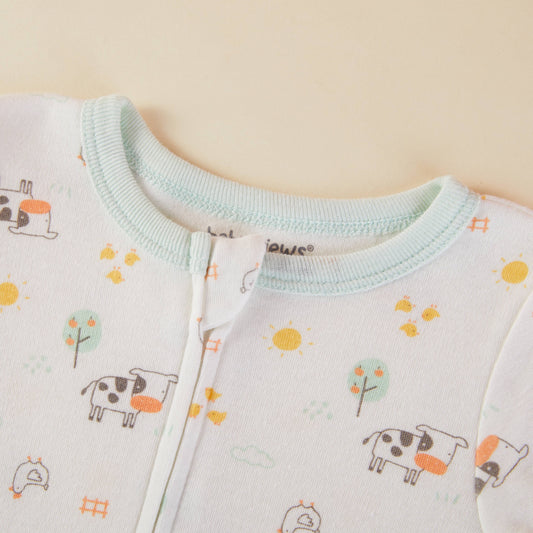 Cow & Farm Animal Pattern Zipper Footie Pajamas Romper