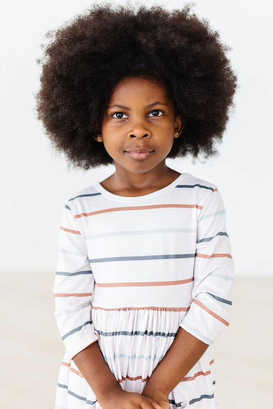 Fall Stripe 3/4 Sleeve Pocket Twirl Dress
