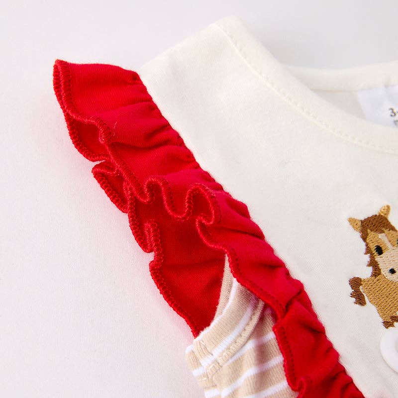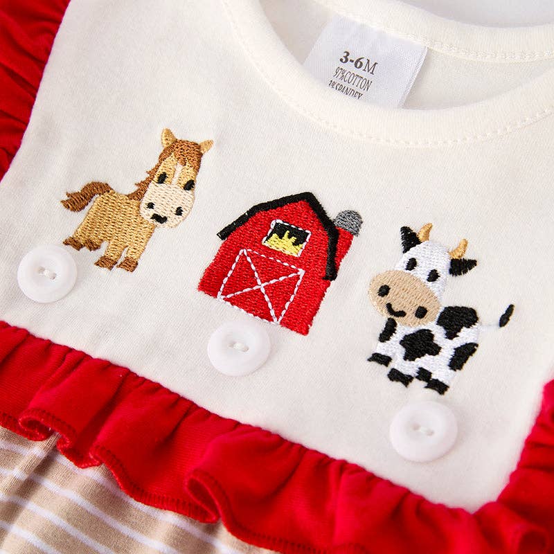 Baby Girls Farm Embroidered Red Ruffled Stripes Romper