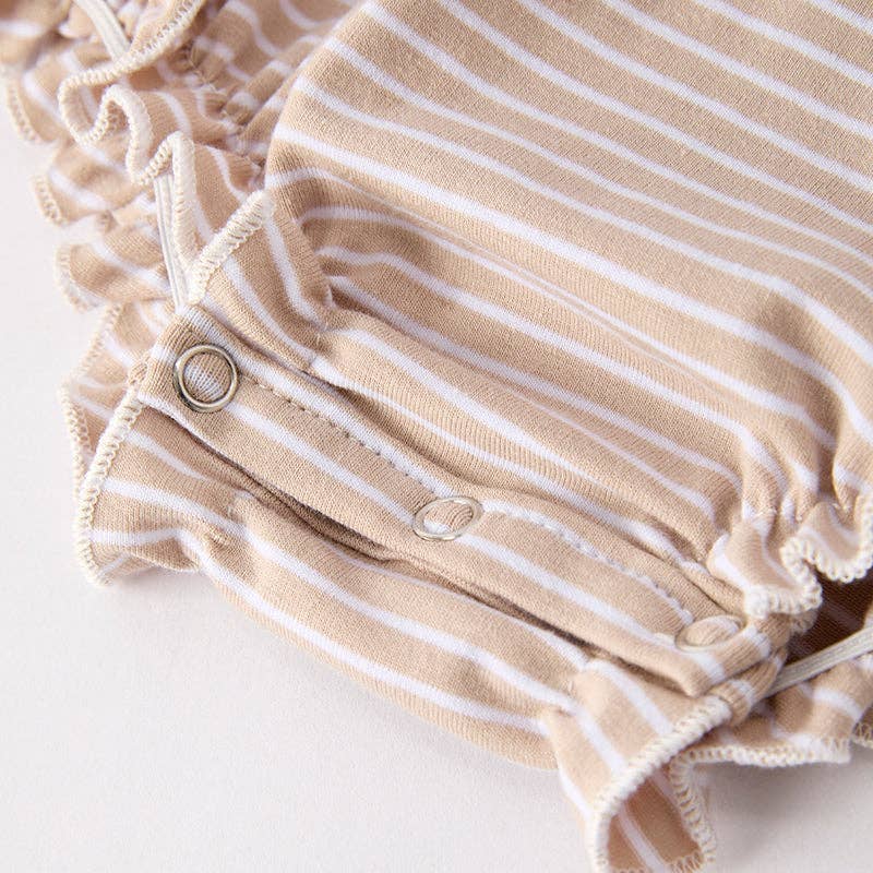 This adorable romper is perfect for your little lady. Its playful stripes and embroidered farm animals add a touch of whimsy to any outfit. The ruffled detailing adds a cute, chic touch, while its soft fabric ensures comfort for all-day wear. A must-have for any little fashionista!