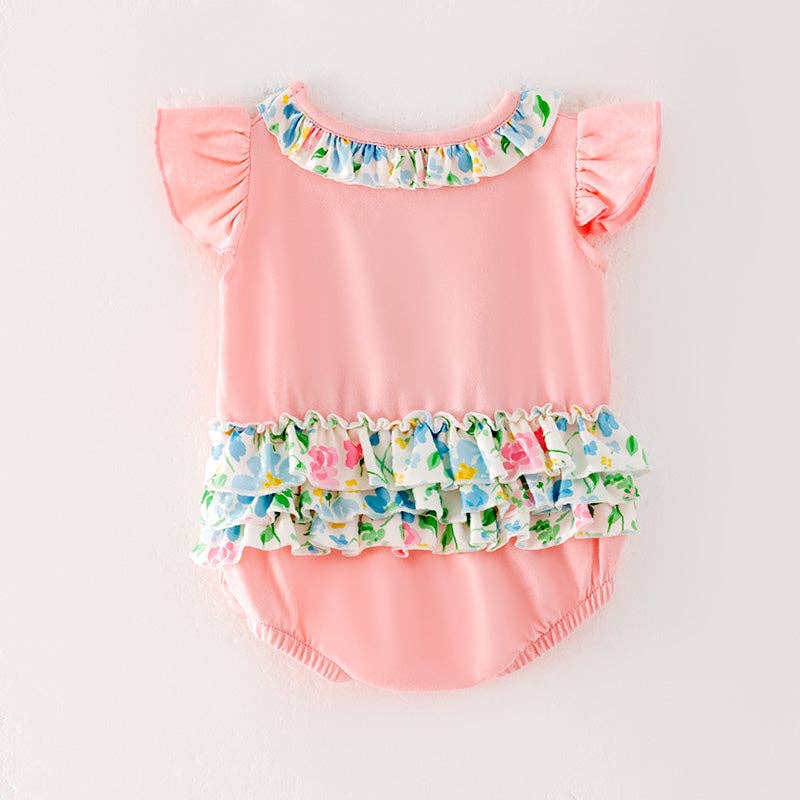 Baby Kids Farm Chick Embroidered Floral Ruffled Romper