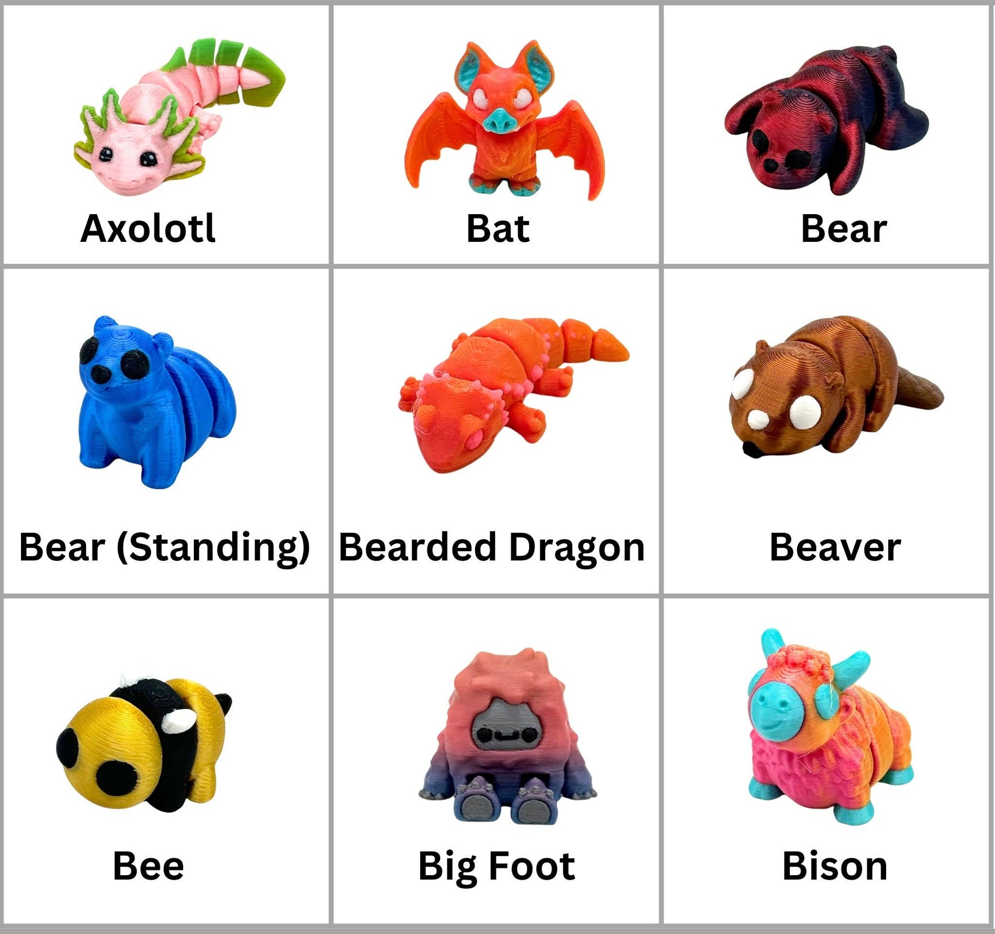 Bumpa Built - Bumpa Minis - Bulk Collectible 3D Printed Fidgets with Dump Bin Display