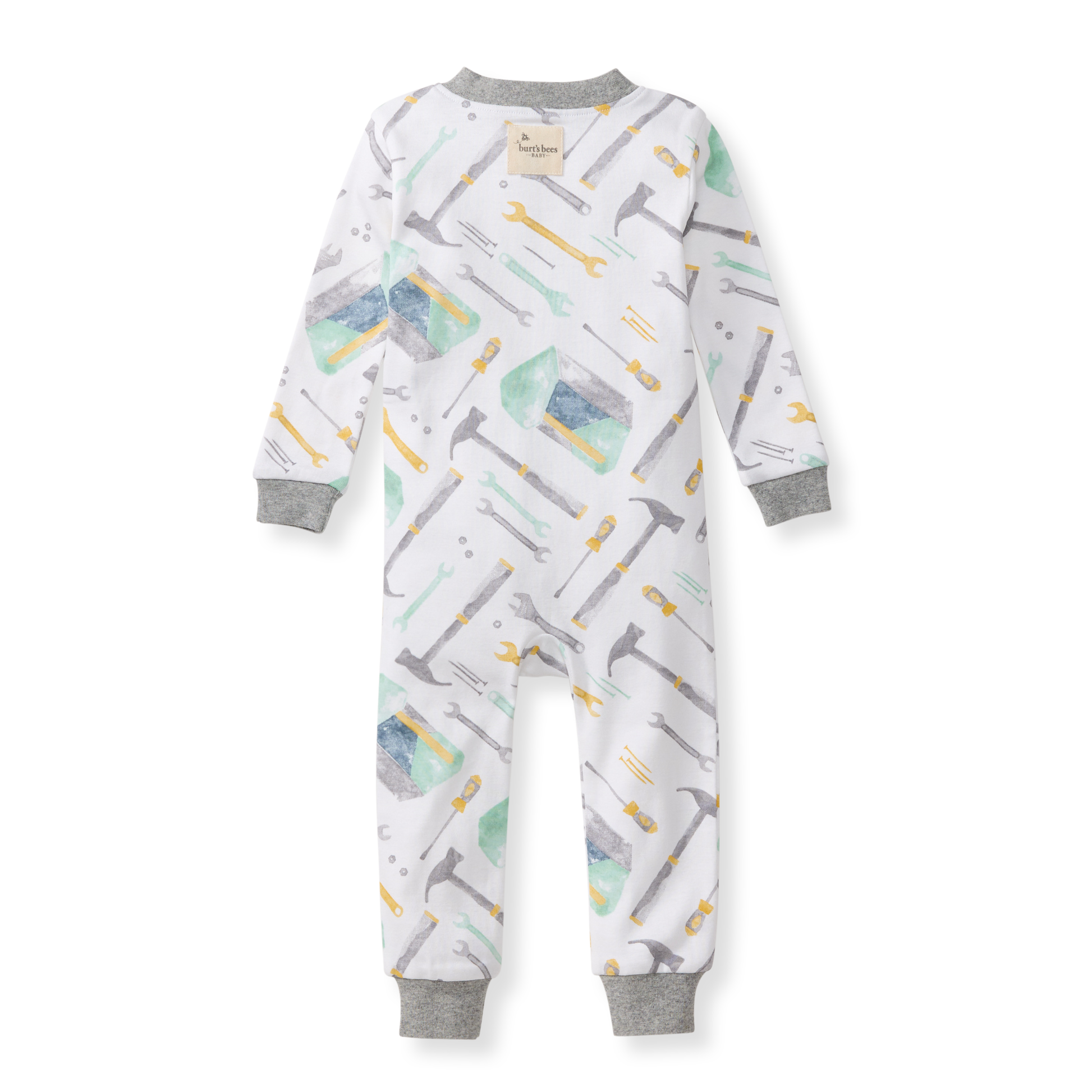 Snap tab at neckline to keep curious hands from pulling on zipper