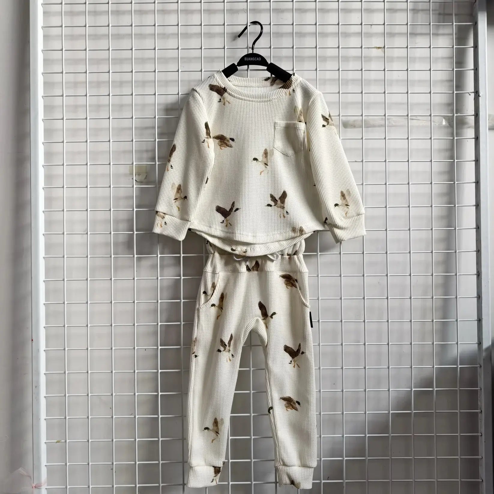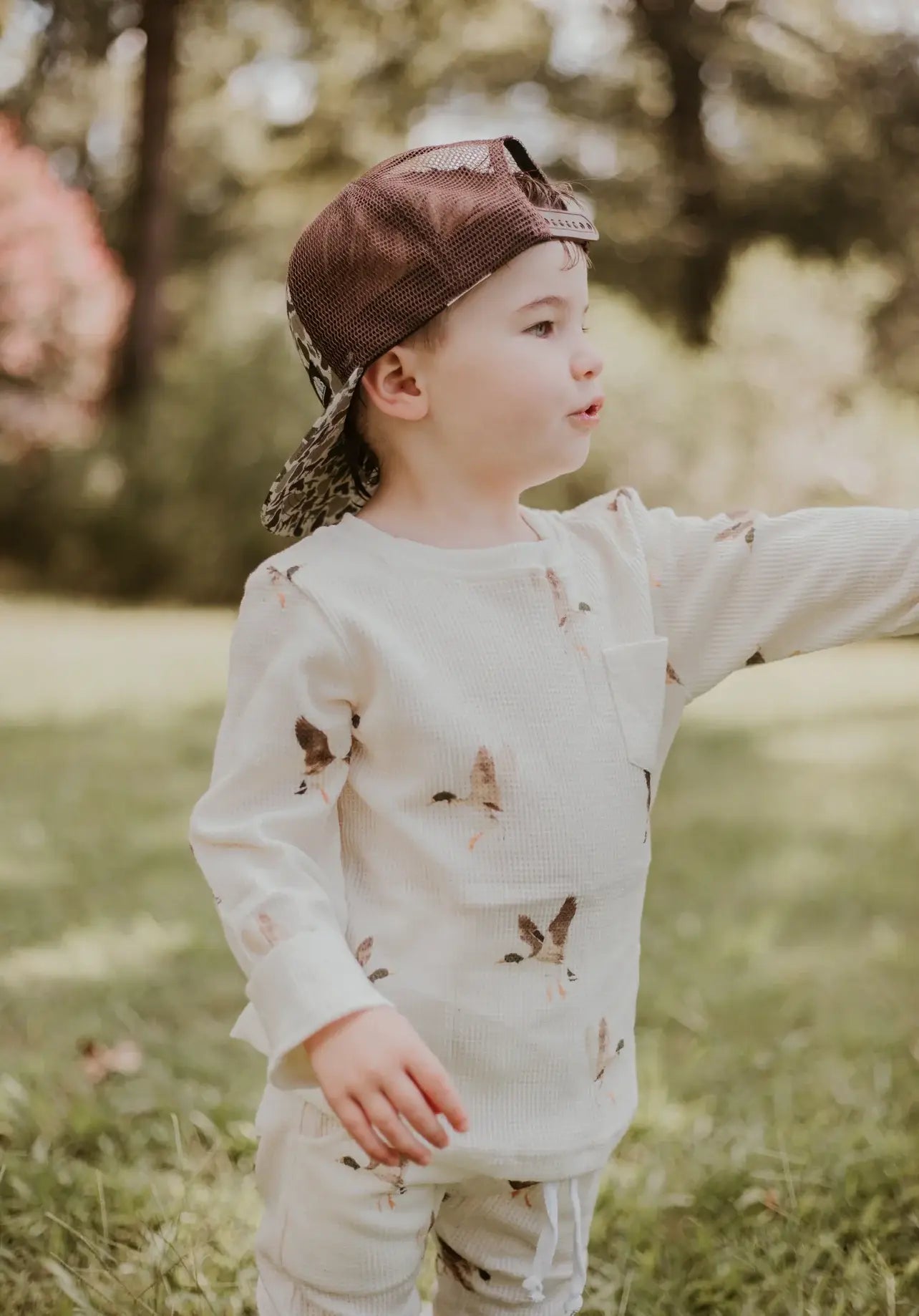 Runs a little big but will shrink a little in the dryer. (My son wears a 3T in most brands and is wearing a 3T in the pictures)