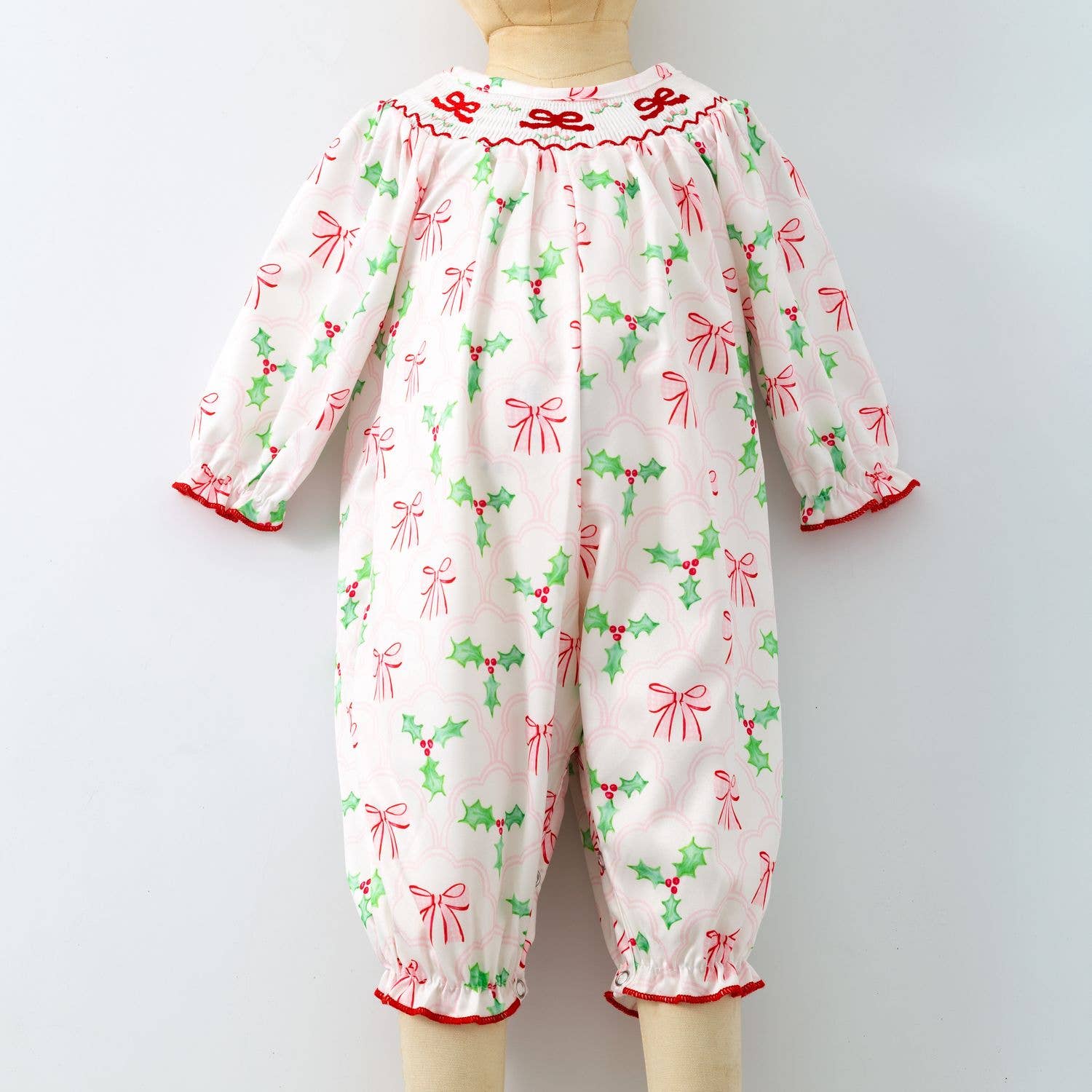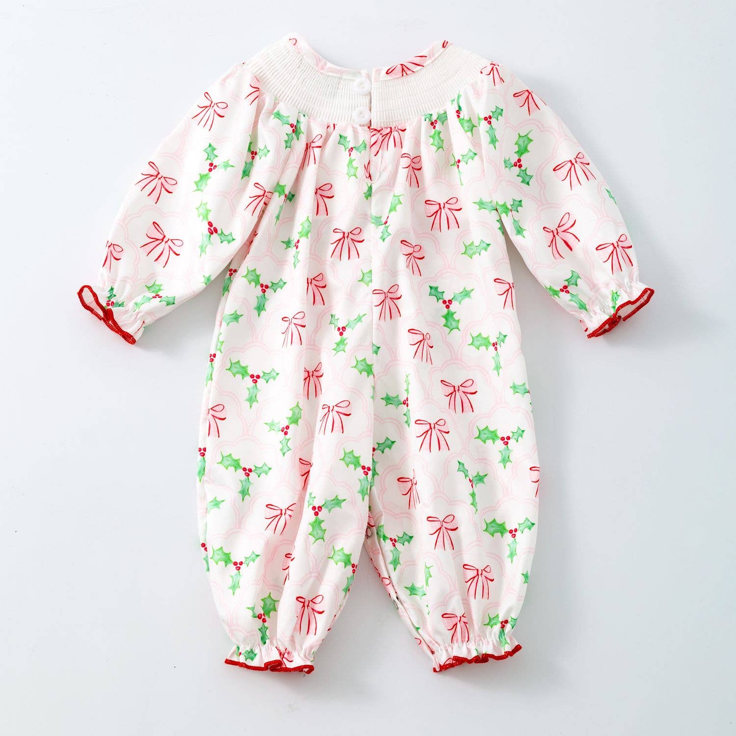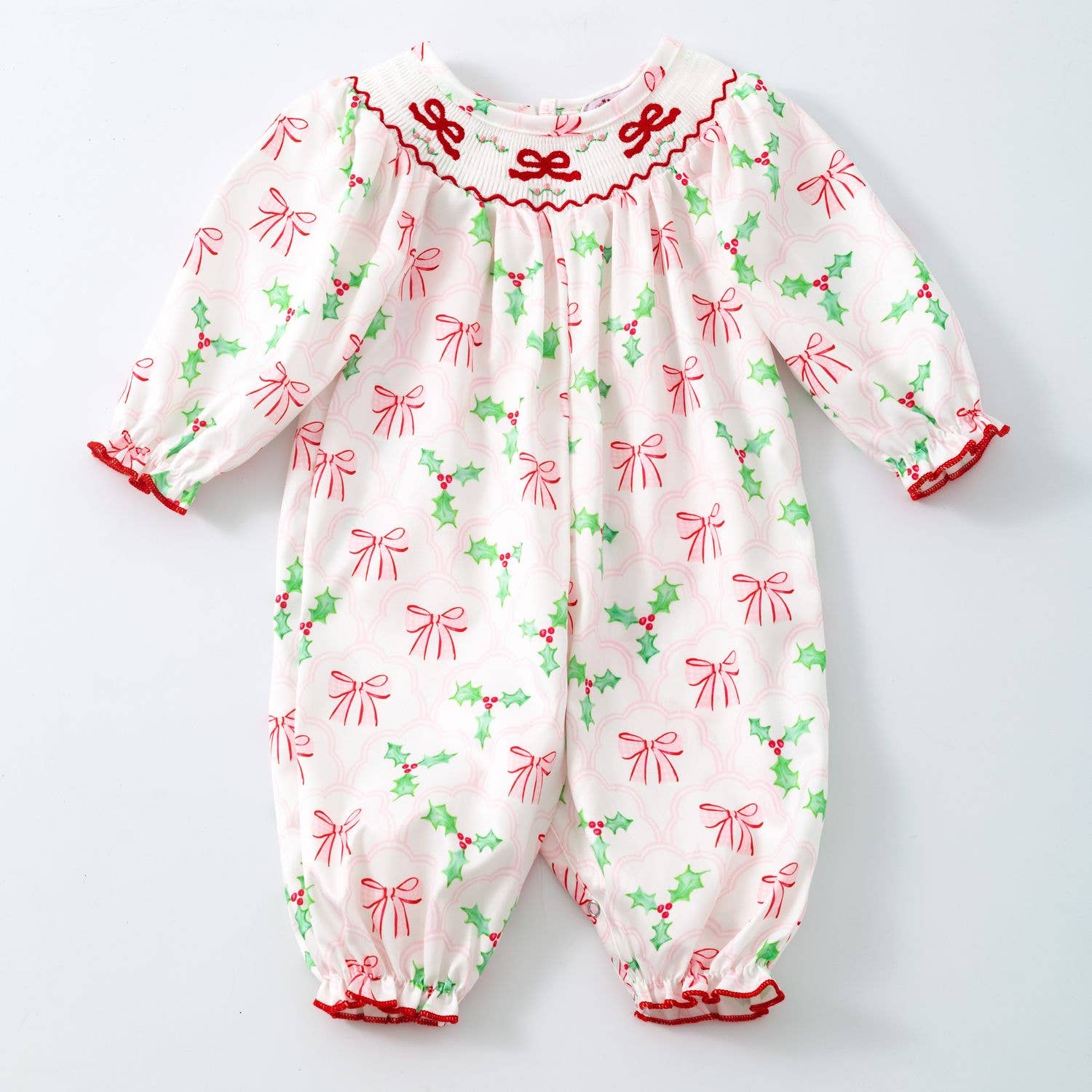Clover Cottage - Bows & Mistletoes Smocked Baby Romper
