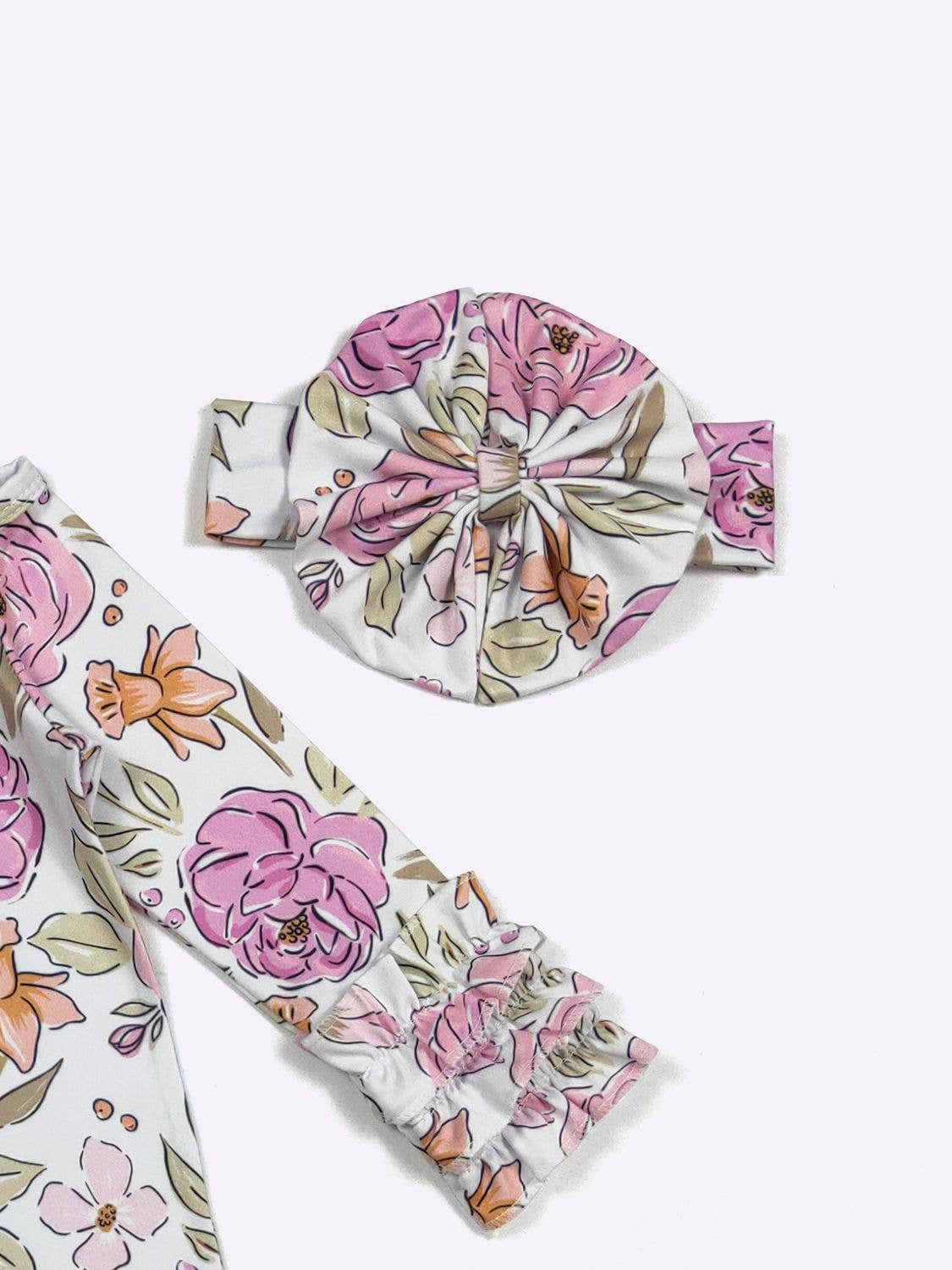 Sewn ruffle around the bottom and sleeves and matching headband!
