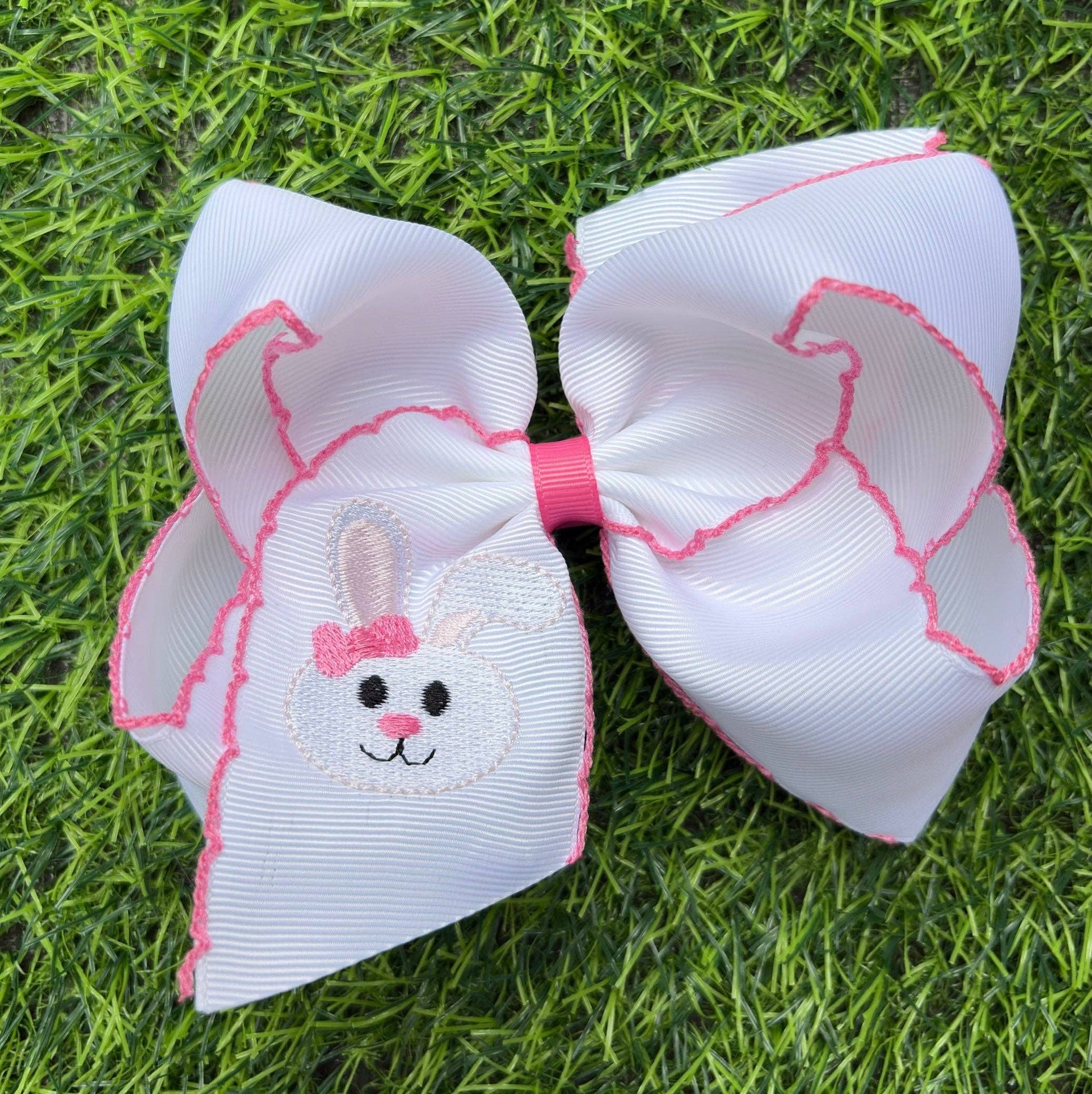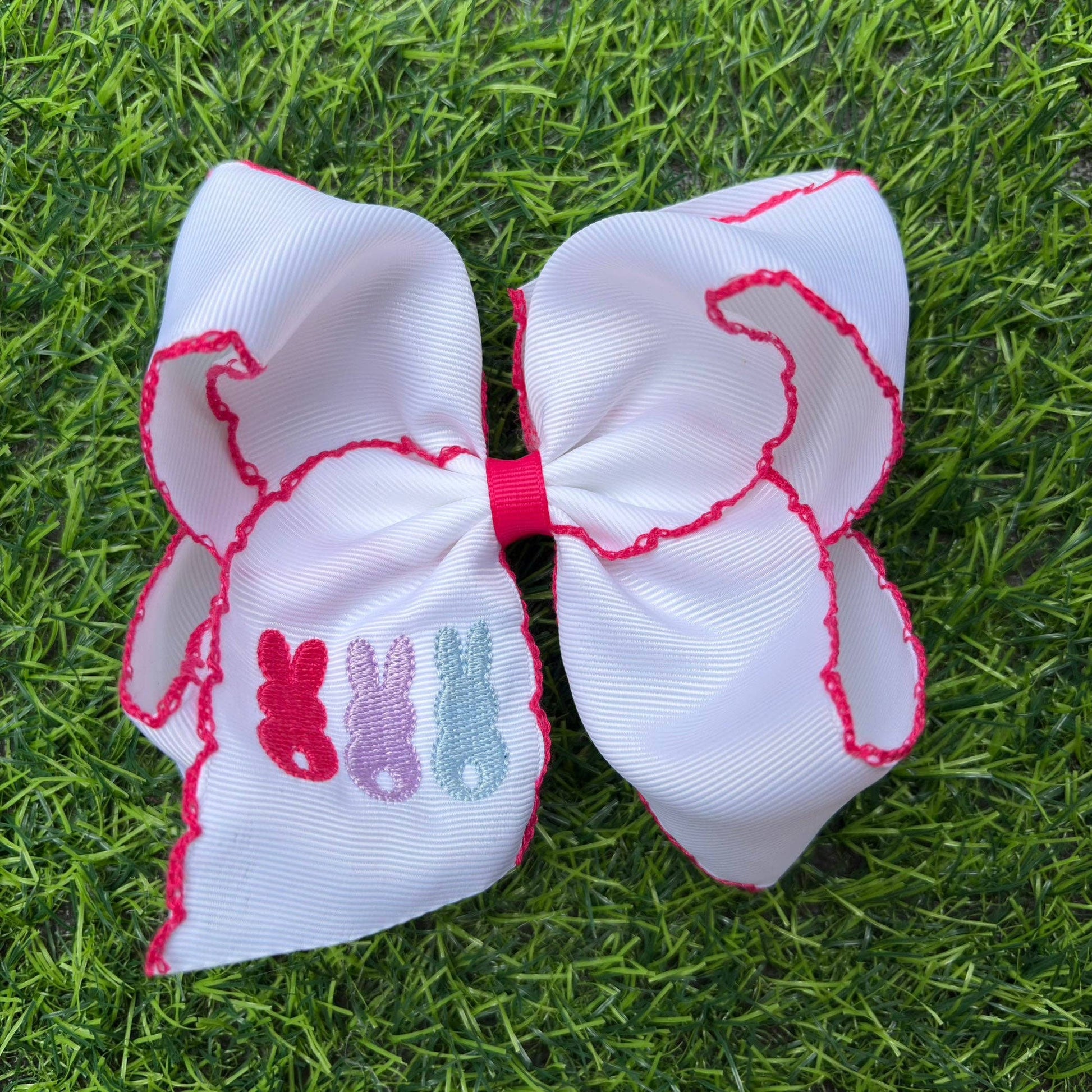 5" Easter embroidered hair bows with moon stitch trim