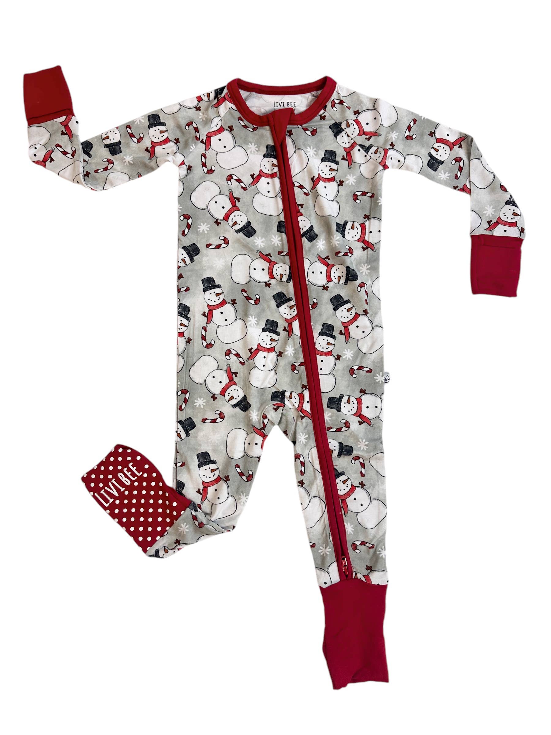 Introducing our Snowman Snuggles Convertible Zip Romper. Made of cozy bamboo and featuring an adorable snowman design, this romper is perfect for keeping your little one warm and snug during the chilly months. The zip design allows for easy changes, making it both practical and cute. Let your child snuggle up in a Snowman Snuggles Romper!