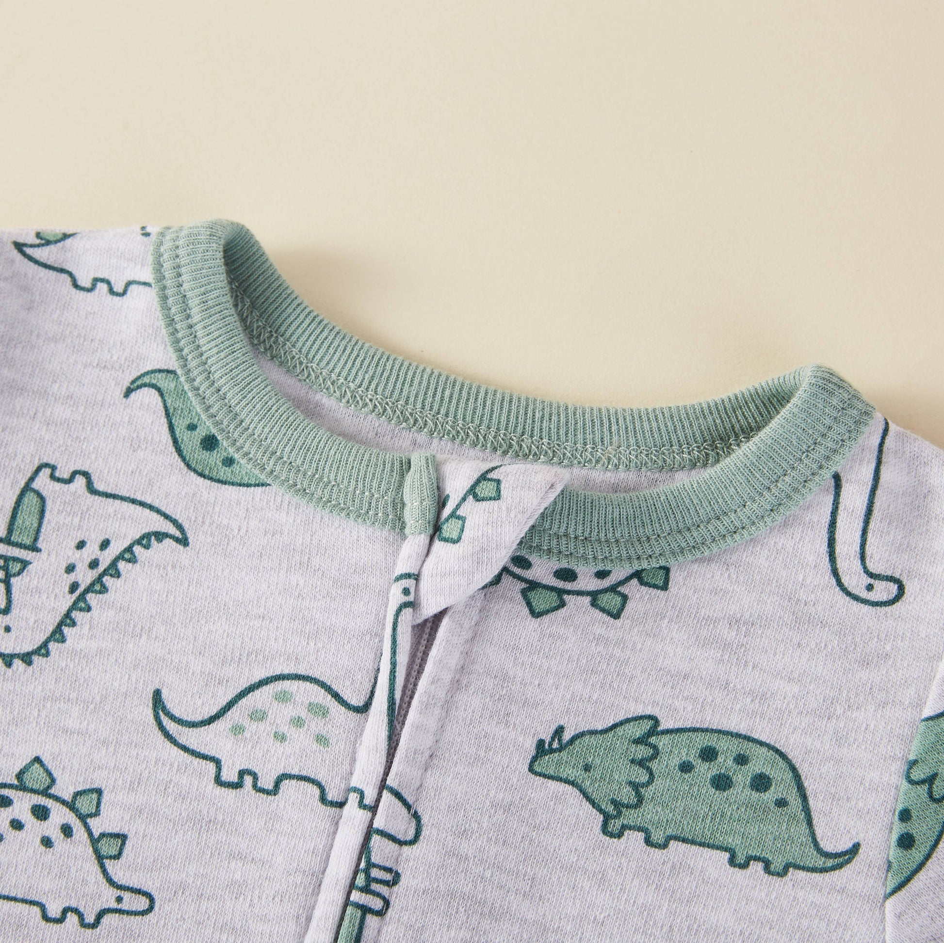 Dinosaur Pattern Zipper Footie Pajamas Romper