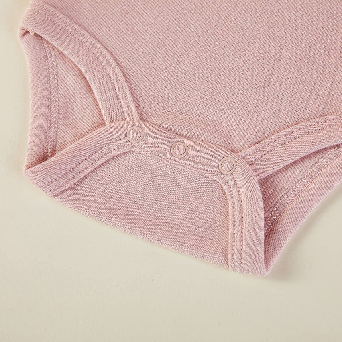 Lap shoulders; short sleeves; snaps at bottom