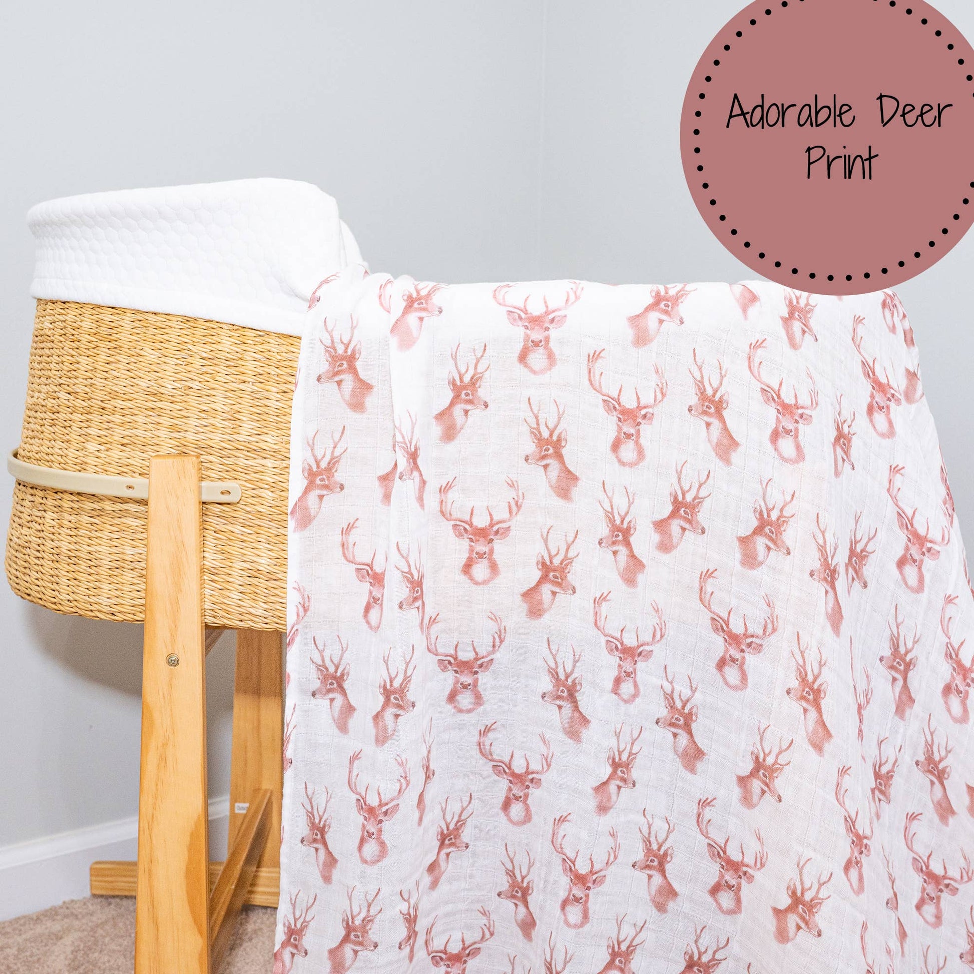 LollyBanks - Oh Deer Baby 100% Cotton Muslin Swaddle Blanket 47"x47"