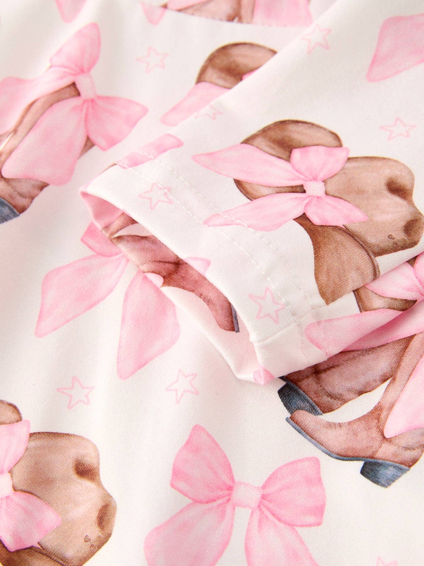 This Autumn Western Girls Bow Milk Silk Long Sleeve Dress combines comfort and style effortlessly. Crafted from soft milk silk, it offers a gentle touch against the skin, perfect for cooler days. The charming bow detail adds a playful, elegant flair, making it ideal for both casual outings and special occasions. With long sleeves to keep your little one cozy, this dress is a versatile addition to her wardrobe that blends classic Western charm with modern comfort.
