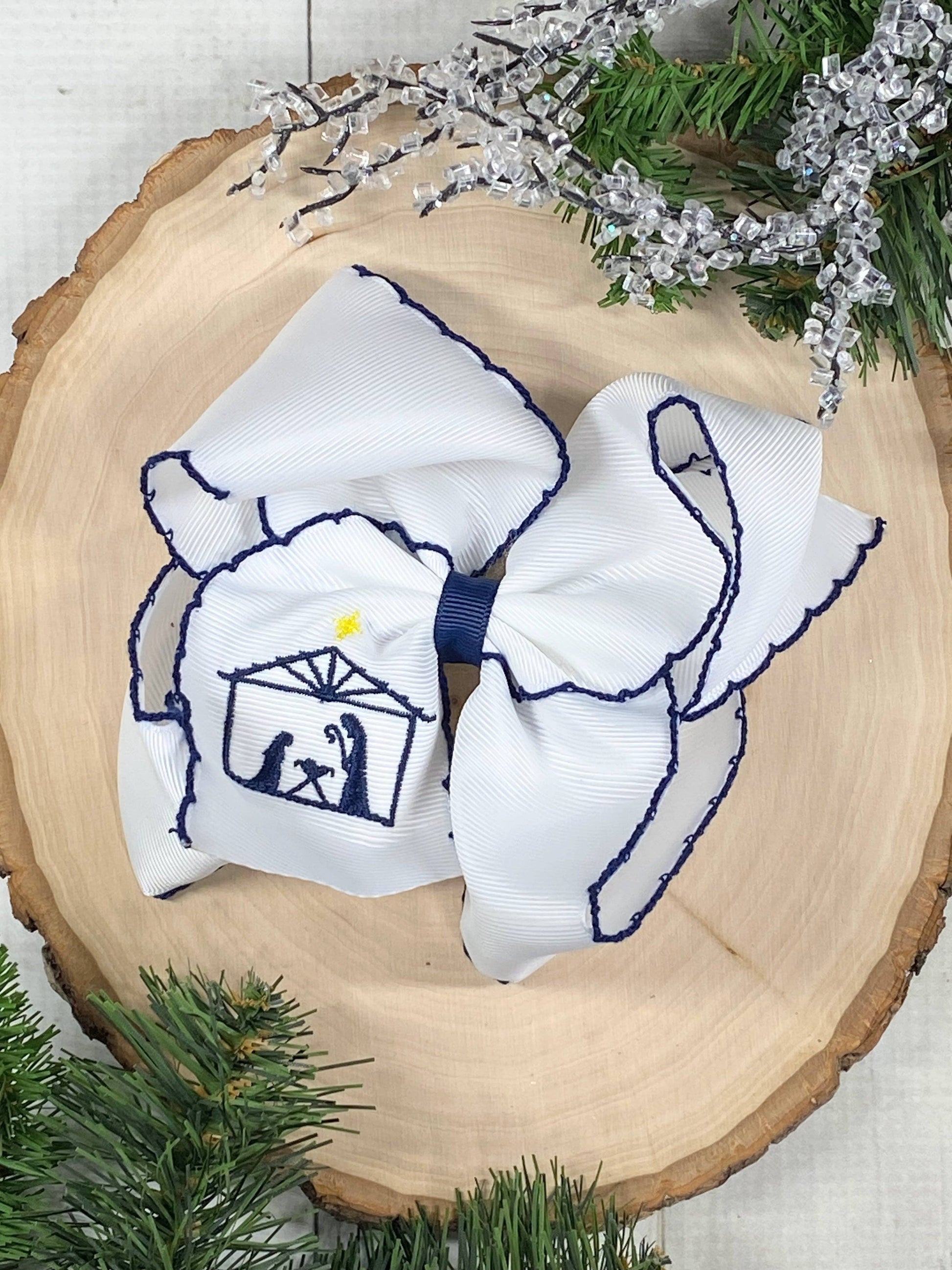 The Hair Bow Company - Nativity Scene Embroidered Moonstitch Hair Bow