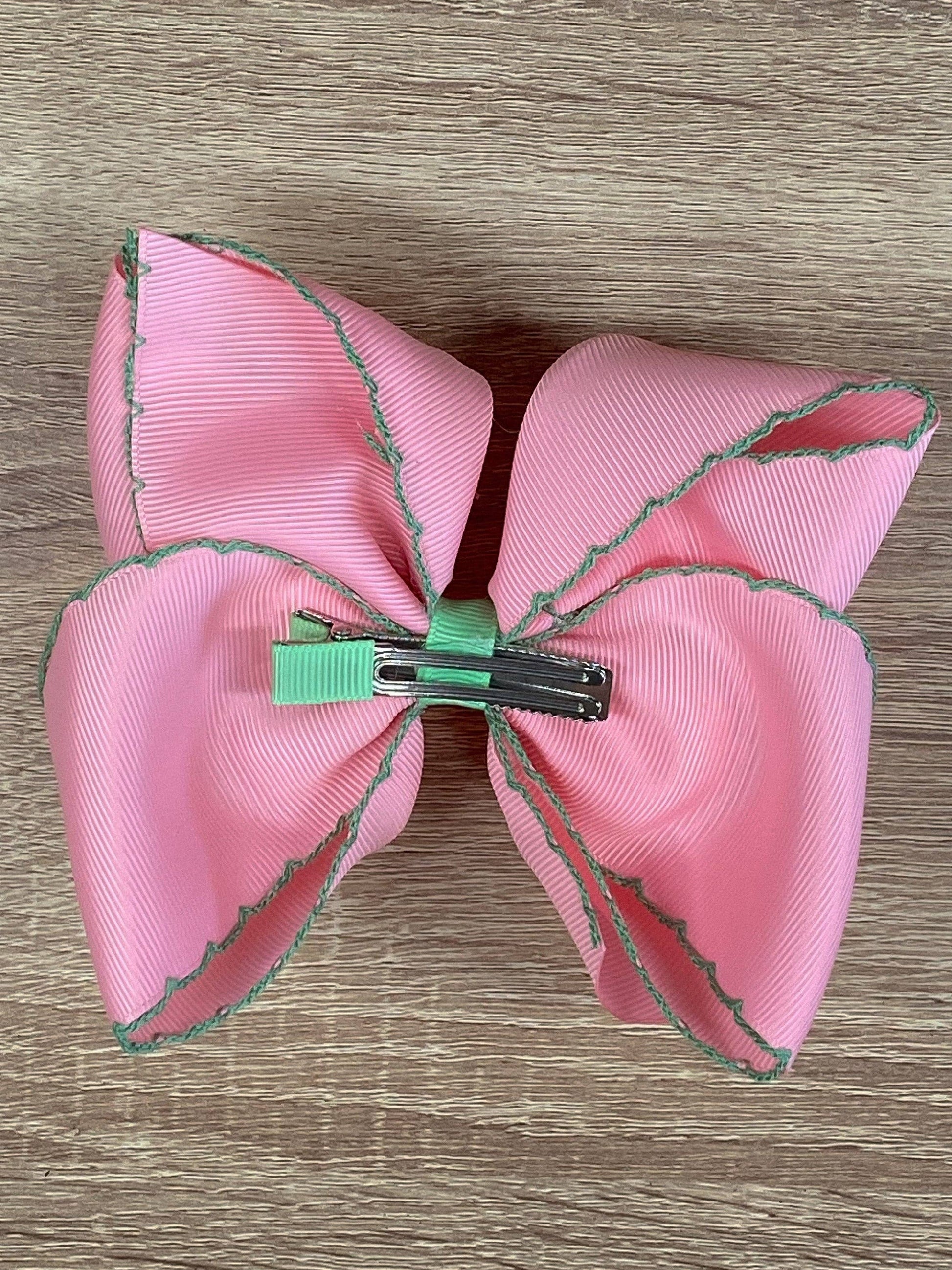 Complete your look with this adorable Pink with Green Moonstitch Hair Bow! Perfect for adding a pop of color and personality to any outfit. Lightweight and versatile, this hair bow is the perfect accessory for any occasion. You'll be the talk of the town with this playful and quirky accessory!